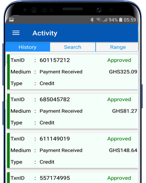 Manage and keep track of your transactions and you can search for transactions witin a particular range or period! All on the go.